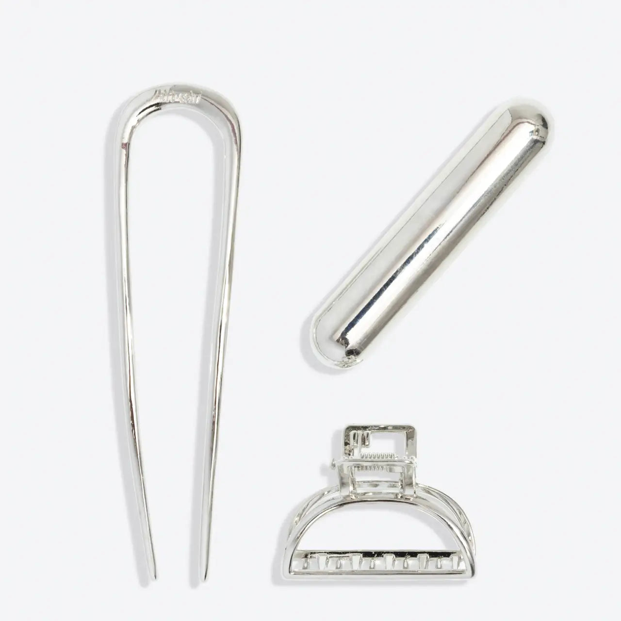 Kitsch Mini Metal French Hair Pin & Clips 3pc Set - Silver