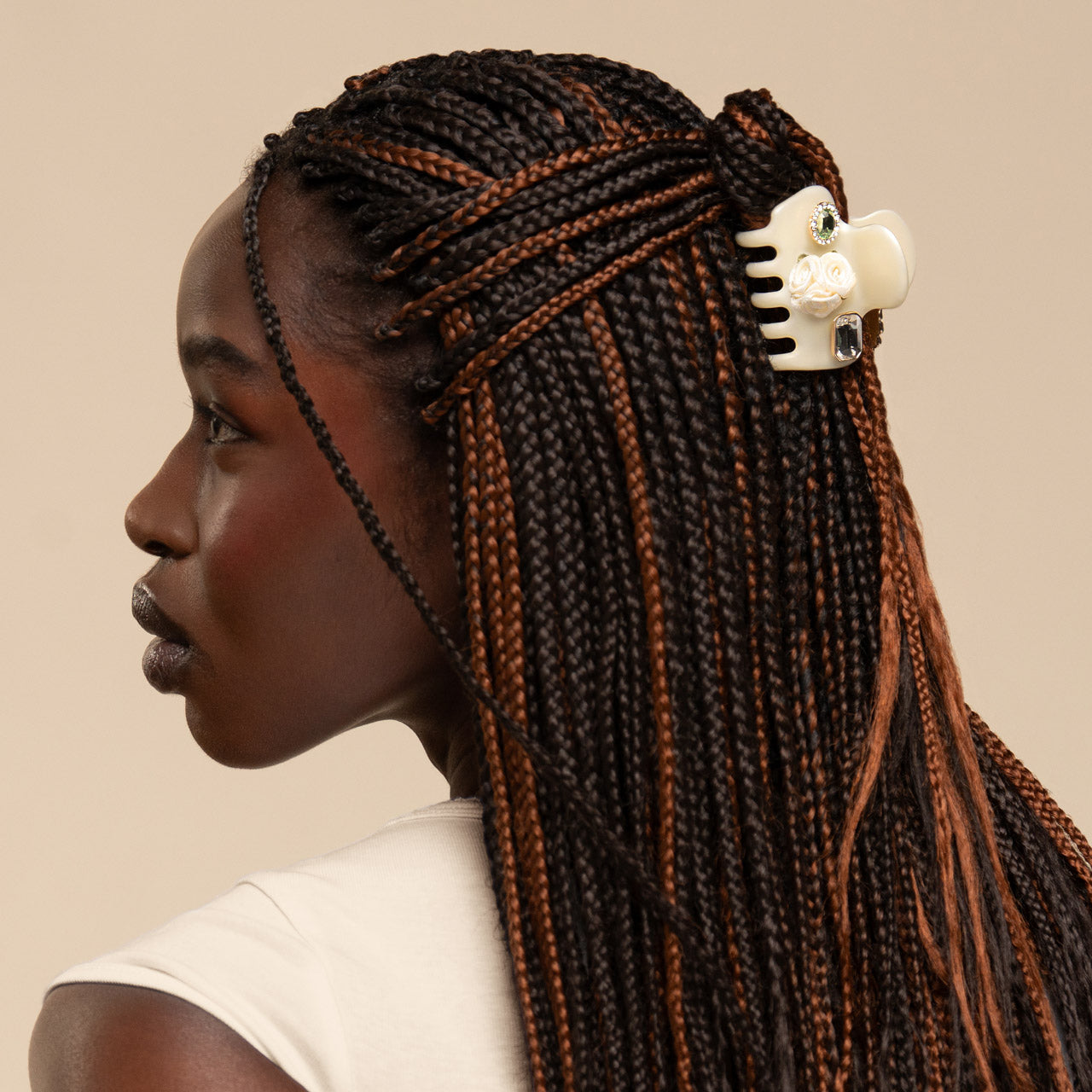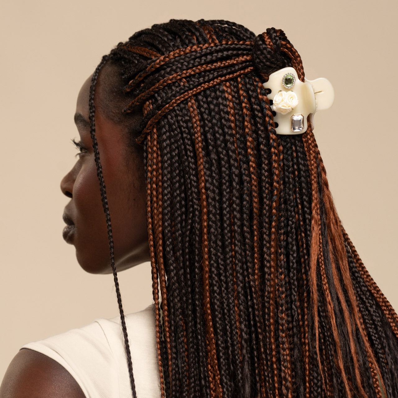 Elevate your hair styling routine with this exquisite seven-piece cloud clip collection from Kitsch pop. Each clip features a soft, pearlized cream finish that combines vintage charm with contemporary elegance. The cloud-shaped design offers a secure yet gentle hold, perfect for all hair types and textures. These lightweight clips are ideal for creating effortless updos, half-up styles, or securing sections during styling. The vintage aesthetic adds a sophisticated touch to any look, while the durable construction ensures long-lasting wear. A versatile essential for both everyday styling and special occasions.
