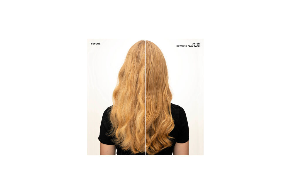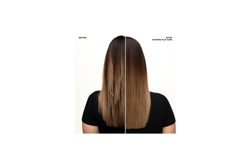 Redken Extreme Play Safe is a heat protectant and hair strengthening spray. This product is perfect for anyone who frequently uses heat to style their hair (blow dryers, flat irons, curling irons). Infused with plant proteins and tourmaline, Extreme Play Safe is a multi-benefit treatment and leave-in conditioner that protects hair from heat up to 230 degrees, helps to repair existing damage, and visibly reduces the appearance of split ends.