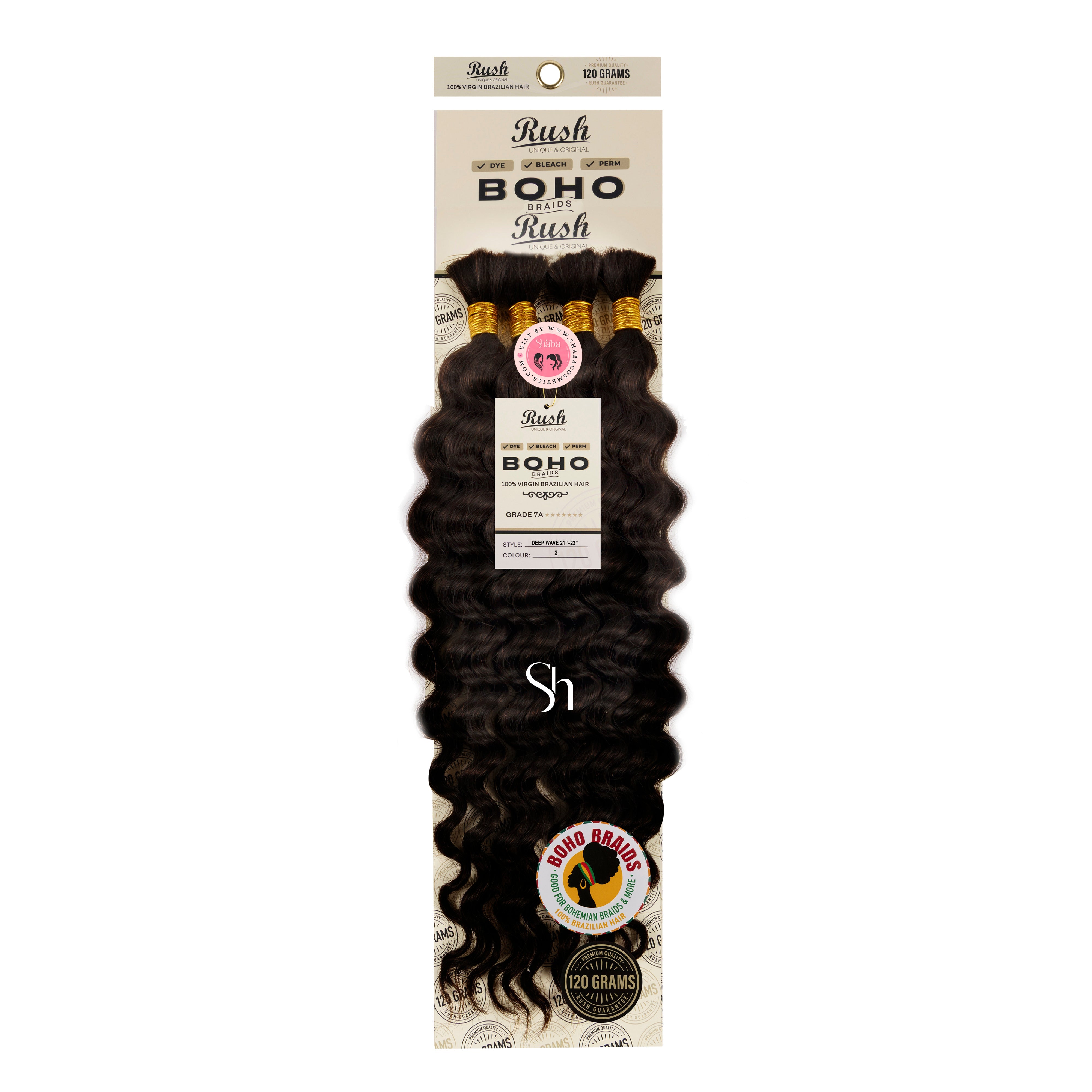 RUSH 100% Virgin Brazilian Boho Braids Deep Wave Bulk 21"-23"