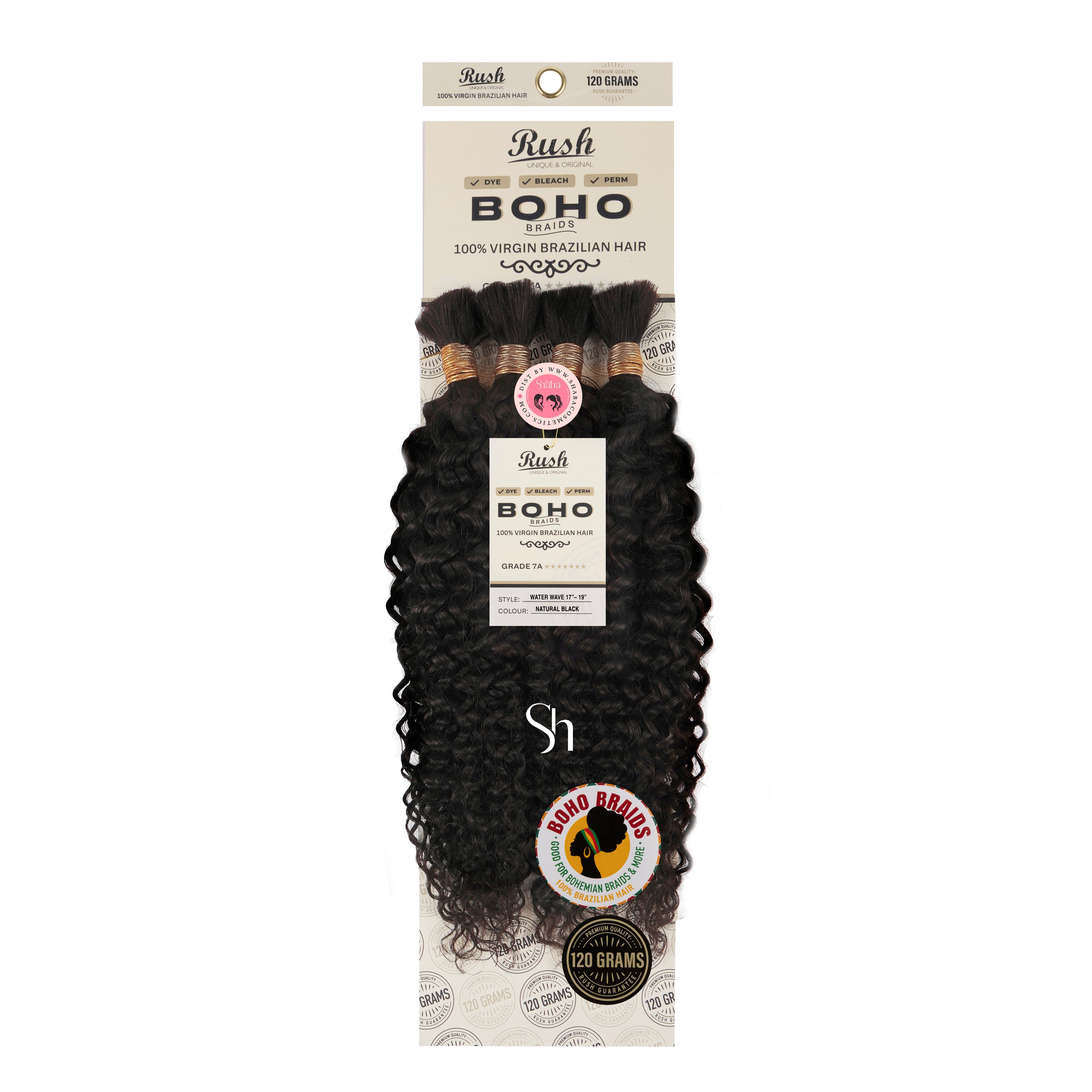 RUSH 100% Virgin Brazilian Boho Braids Water Wave Bulk 17"-19"