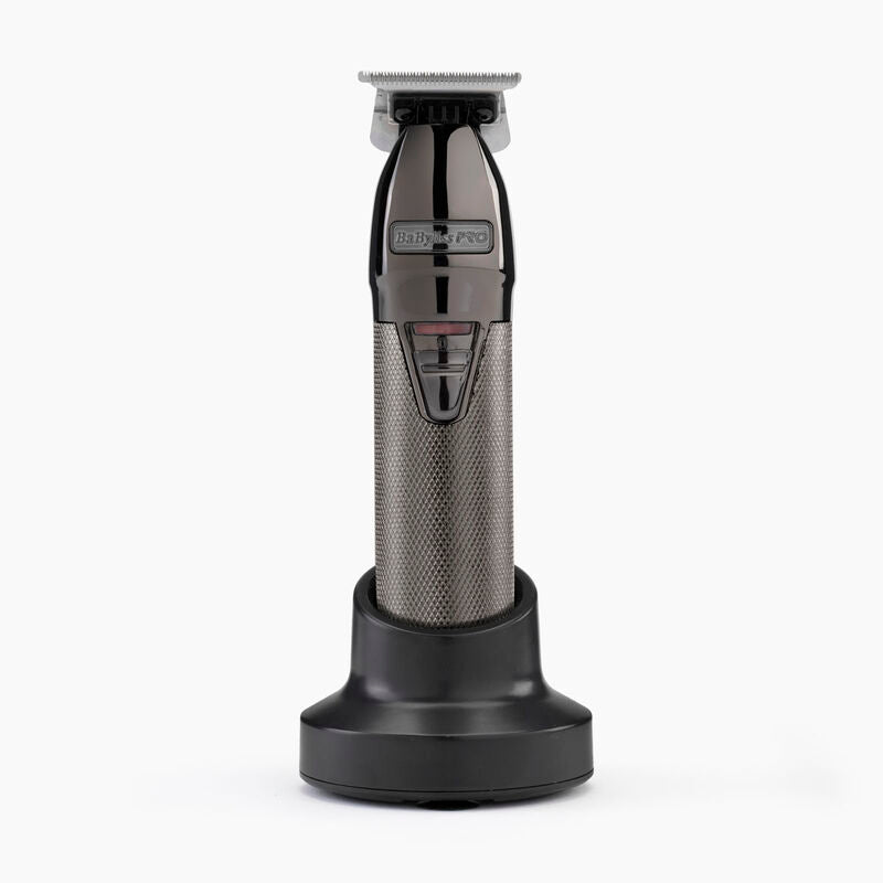BABYLISS Super Motor Skeleton Trimmer. A heavy duty professional skeleton trimmer with extra wide Japanese steel T-Blade which has a zero-gap function to help deliver precision detailing and outlining. The Skeleton brush-less motor and high-performance lithium battery provide 120 minutes of run time from a 3 hour charge for sustained power, speed and outstanding close cut performance. Absolutely balanced for superior handling, the new trimmer with all-metal housing design has been engineered for total professional reliability.
