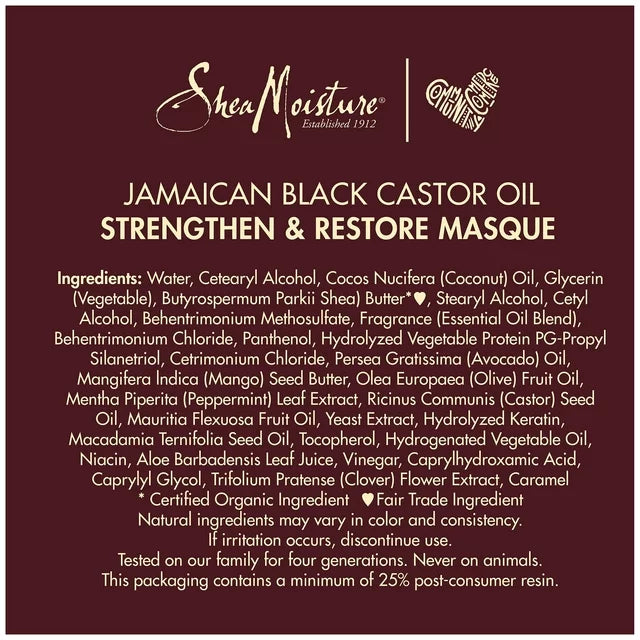 Product Name: SheaMoisture Jamaican Black Castor Oil Strengthen & Restore Treatment Masque (355ml)